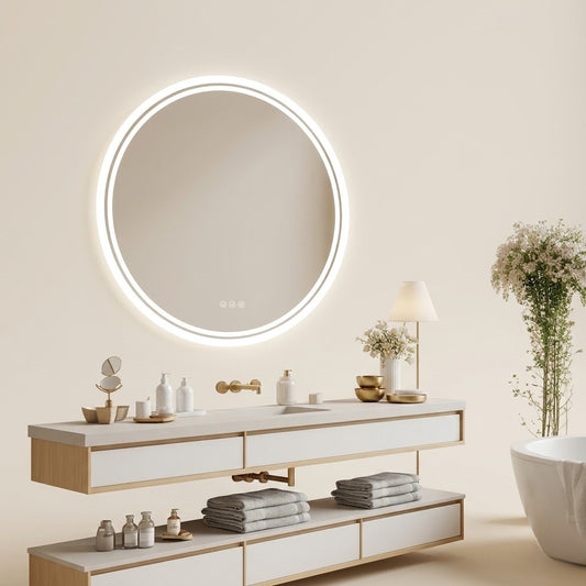 Miroir salle de bain LED rond anti-buée tactile rétroéclairé design moderne