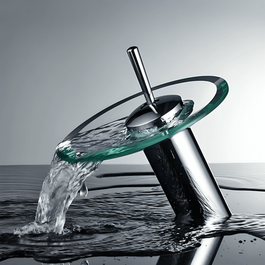 Robinet cascade en verre chromé pour lavabo – Design moderne