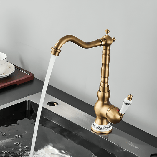 Robinet en laiton antique pour salle de bain – Bec rotatif, poignée céramique