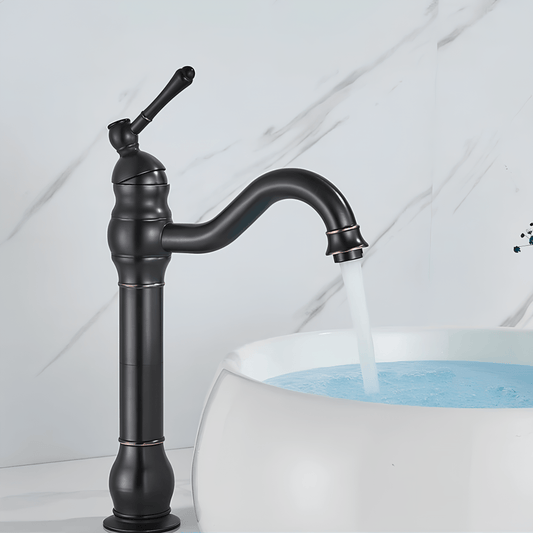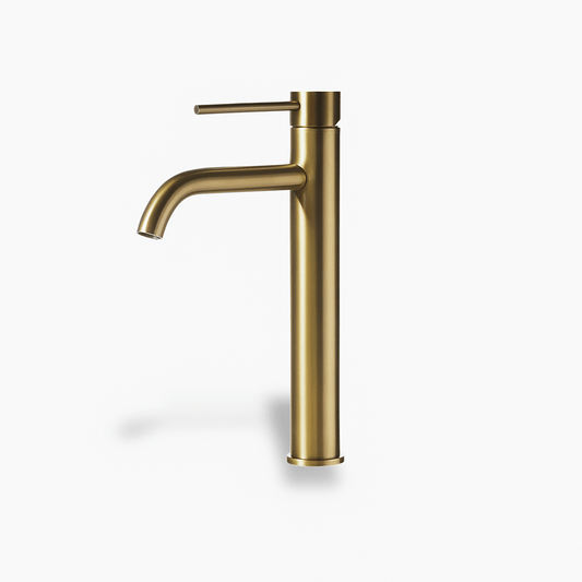 Robinet de lavabo haut en laiton brossé – cascade vintage à levier unique