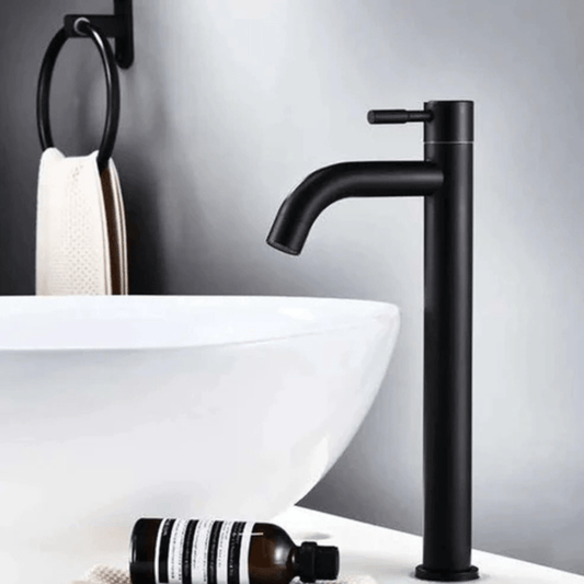 Robinet salle de bain haut en inox – Modèle élancé pour vasque surélevée